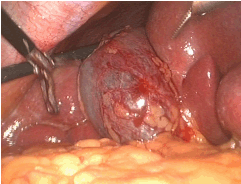 A 66-year-old female presented with a four-day history of right side abdominal pain associated with nausea. The pain started gradually from epigastric region and increased in severity in last 10 hours. On physical examination, she had a tachycardia (pulse rate 105 beats per minute) with normal blood pressure but she was pyrexic (38.4°C). Abdominal examination showed tenderness in right sides of abdomen including right iliac fossa. Murphy sign was +ve. Obturator, rovsing and psoas signs were negative. Laboratory tests showed normal white blood cell count and liver function tests. An ultrasound of her abdomen and pelvis revealed an inflamed, thick-walled gallbladder with the evidence of multiple small gallstones. Her appendix could not be visualized and there was no free fluid in the pelvis. A diagnostic +/- therapeutic laparoscopy was performed, which revealed an inflamed gallbladder and fluid collection in right iliac fossa with foul smelling (Figure 1). A combined laparoscopic cholecystectomy with open appendectomy was performed (Figure 2). Intraoperatively perforated appendix was found. The sample was lost by the family before being examined histopathologically. Postoperative follow up was uneventful and the patient was free of complaint two weeks later. | ||||||
