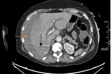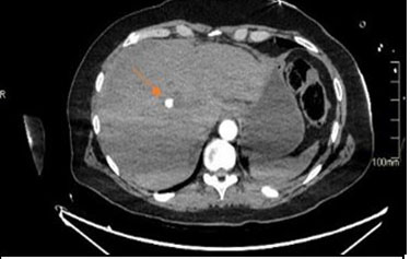 In conclusion, the rupture of a hepatic artery aneurysm constitutes a genuine surgical emergency necessitating both clinical expertise and surgical acumen. Typically asymptomatic unless actively dissecting, these aneurysms require urgent treatment when symptomatic. Despite not commonly being the primary consideration for right upper quadrant pain, hepatic artery aneurysms should be recognized as a significant underlying cause of symptoms, and prompt repair is imperative upon identification through imaging. This case underscores the critical role of interventional radiology as a safe and reliable alternative to surgical intervention in unstable patients requiring emergency management.