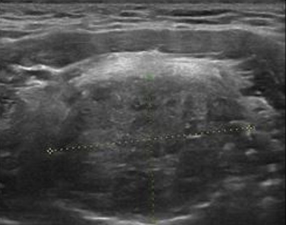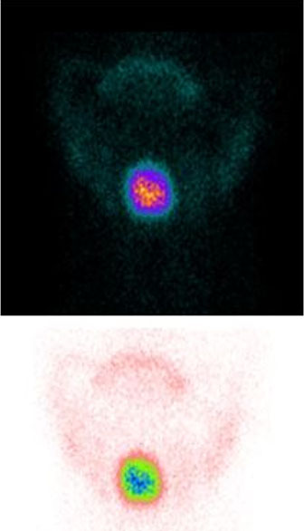 The Tc99 scan investigation (TC99M *I, 72 MBq, i.v.) highlighted increased tracer uptake consistently with the structure reported on ultrasound imaging. Uptake in the anterior region of the neck and in other areas of the body was absent (Figure 3).